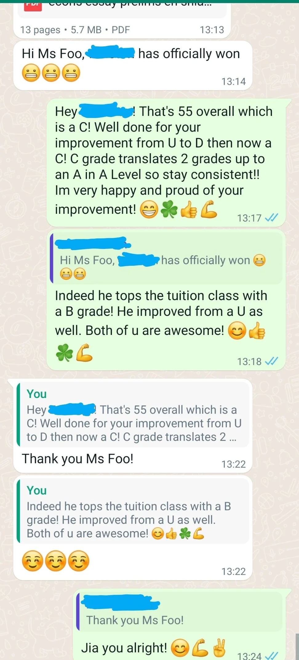 We would like to share some Prelims results of some of our achievers where they demonstrated outstanding improvement to an A grade for Economics while some went on to achieved B or C grade. Do note that 90% of these students were either doing badly in the subject with either U, S or E grade but went on to overcome the challenges to achieve the results today. Well done to our students!