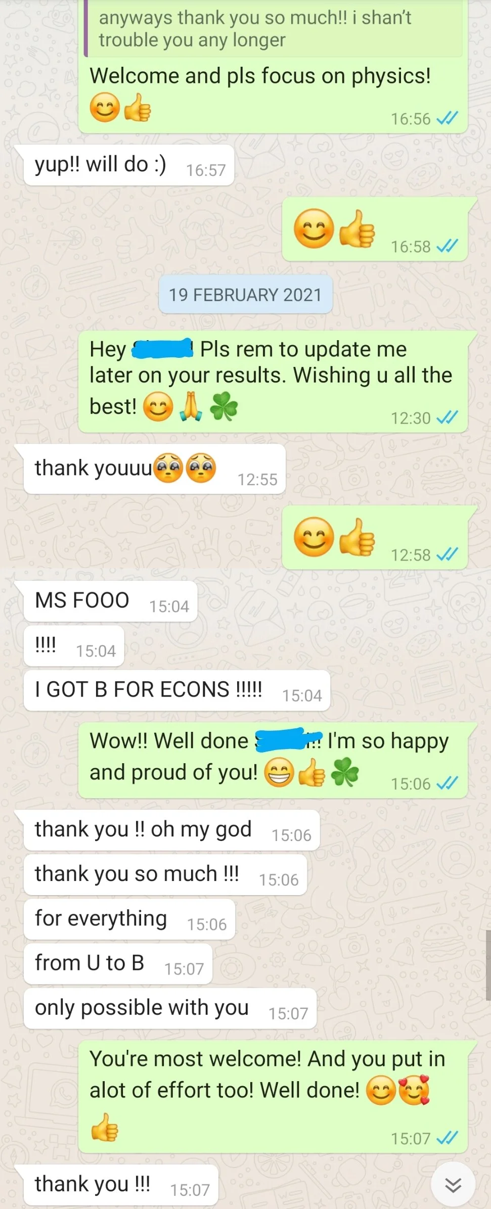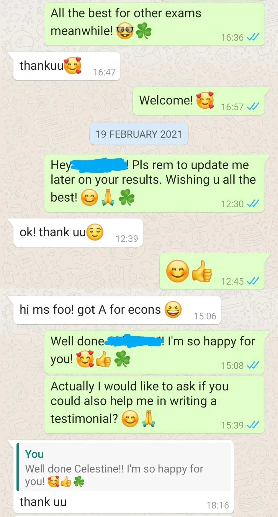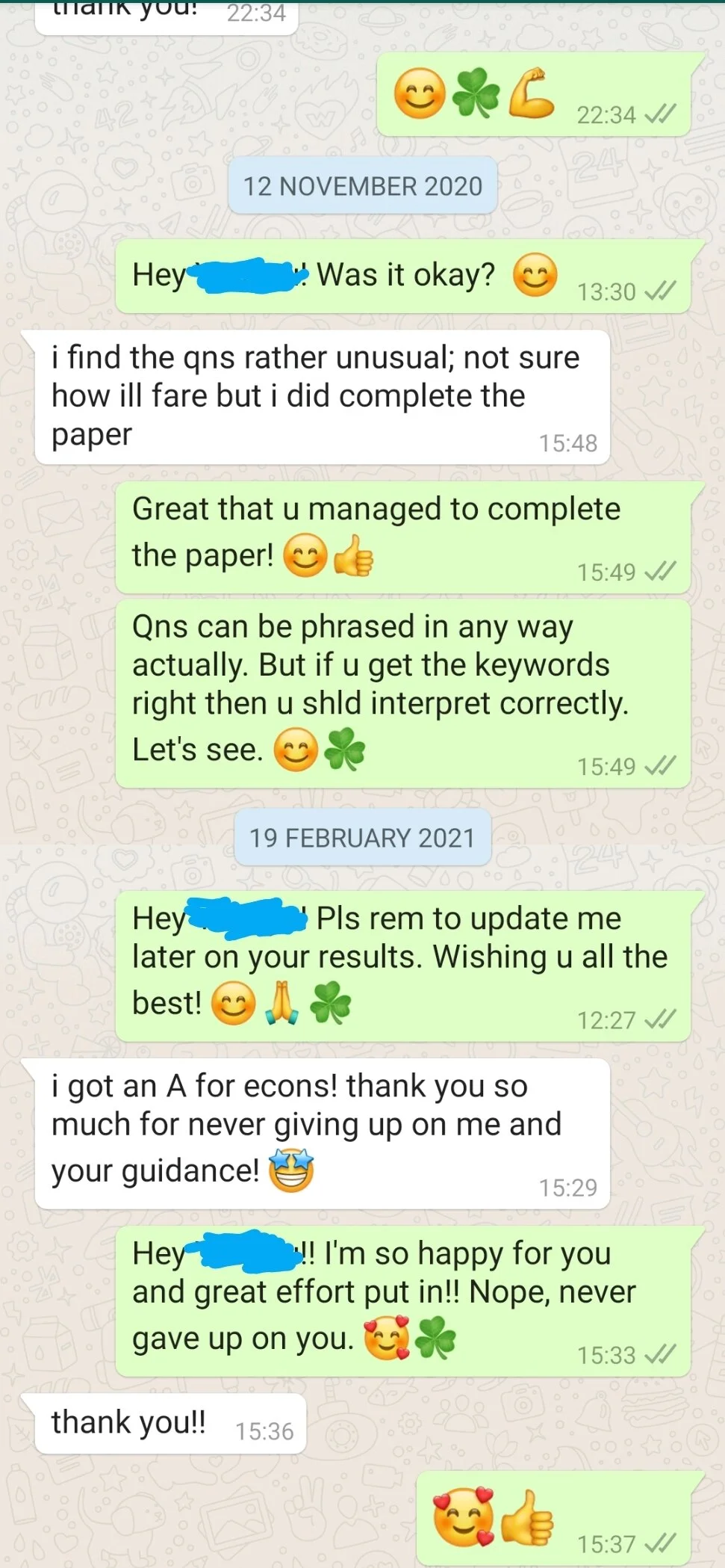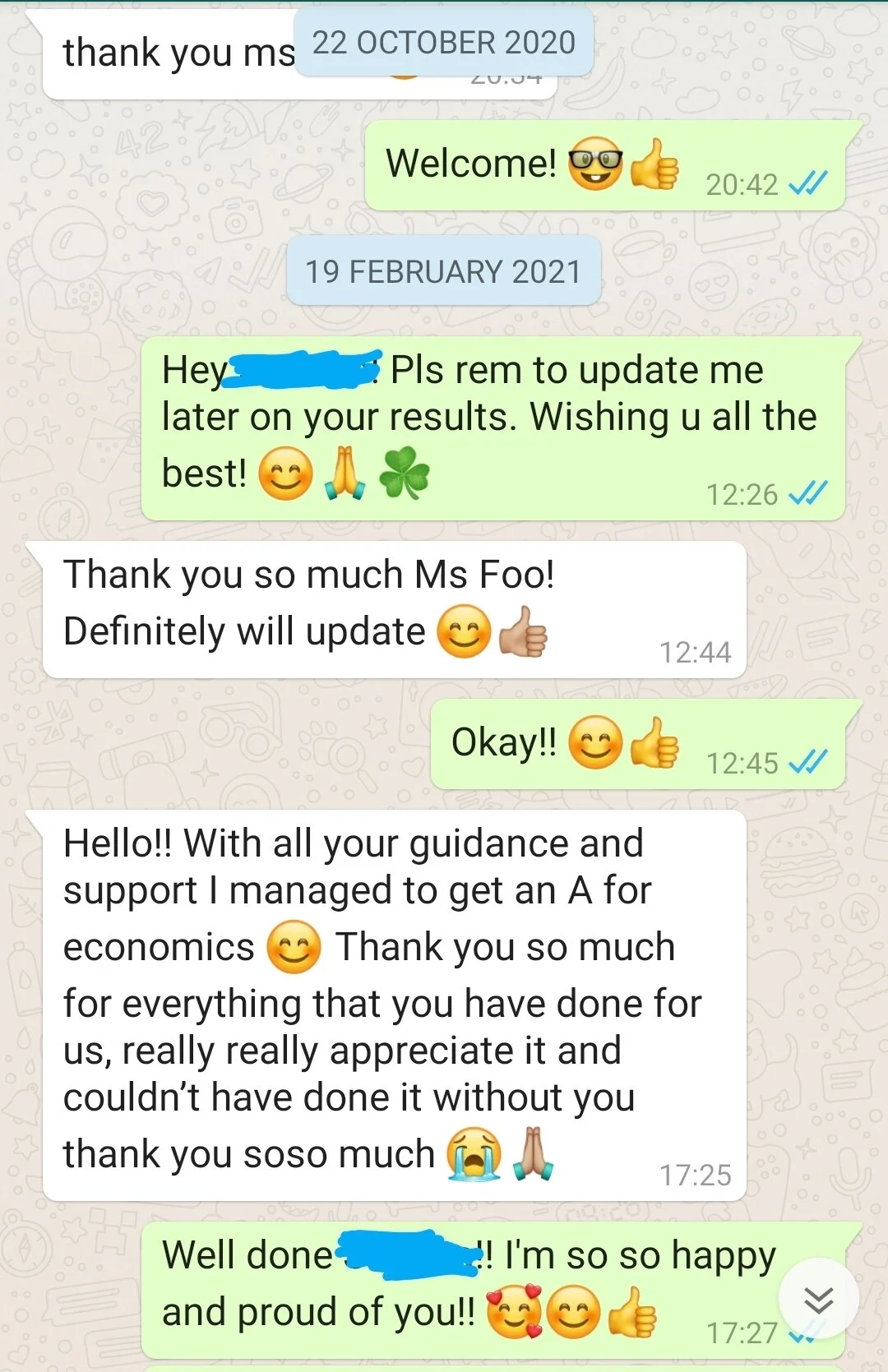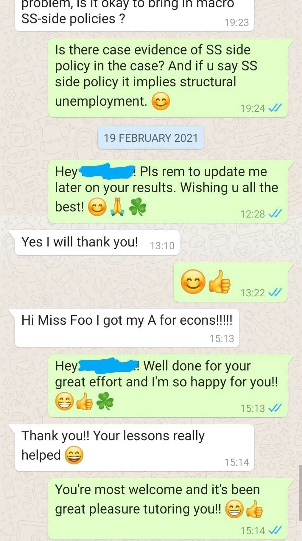 The Covid-19 pandemic has changed the way lessons are conducted at school. Besides the conventional face-to-face lessons, HBL are also included. At EconsLab, we offered online lessons to our students during circuit breaker to ensure lessons are not disrupted. With their unwavering determination, our students maintained consistency in their learning via weekly lessons through the support of our highly-experienced star tutor Ms Foo. Our students eventually achieved academic excellence in the 2020 GCE A Level Economics exam. Big congratulations to our achievers!